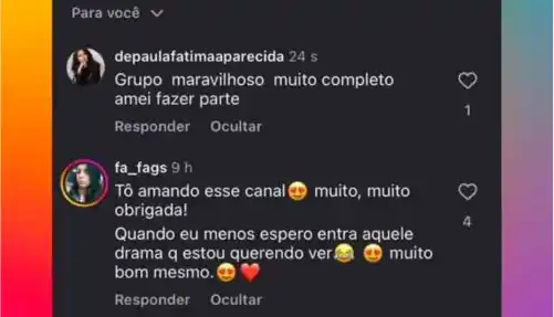 "Indico para todas as minhas amigas! O grupo tem recomendações personalizadas, discussões por série e conteúdo novo o tempo todo."