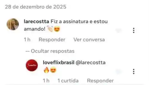 "Os mini dramas são viciantes demais! Fico acordada até tarde maratonando. O atendimento é super rápido quando preciso de ajuda."